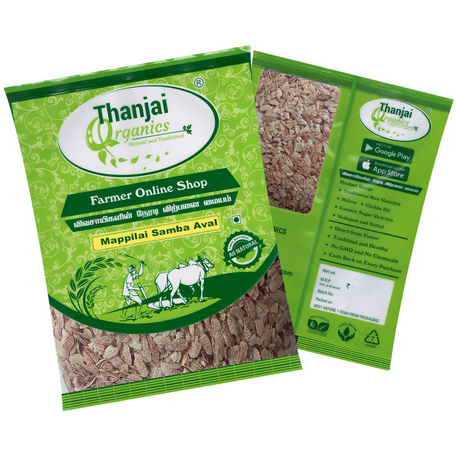 Mappillai Samba Aval is better health benefits. Thanjai Organics offering Mappillai Samba Flakes/Poha/Aval in Thiruvarur, Tamilnadu, India