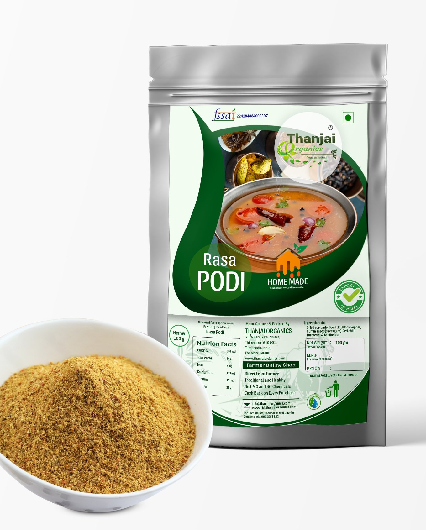 Thanjai Organic offering Curry Leaf Podi in Thiruvarur, Tamil Nadu, India.